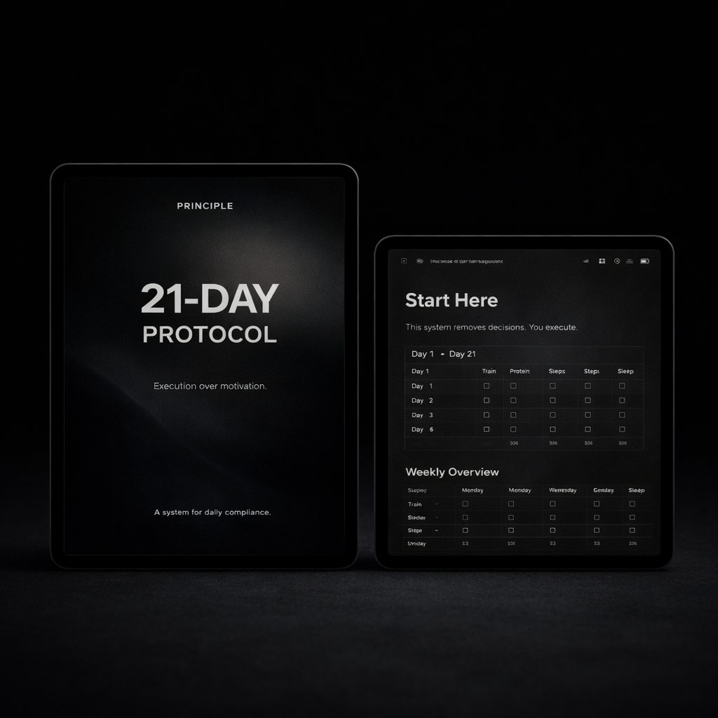 PRINCIPLE — 21 Days is a fixed fat-loss system designed to remove decision fatigue and force consistency through structure.